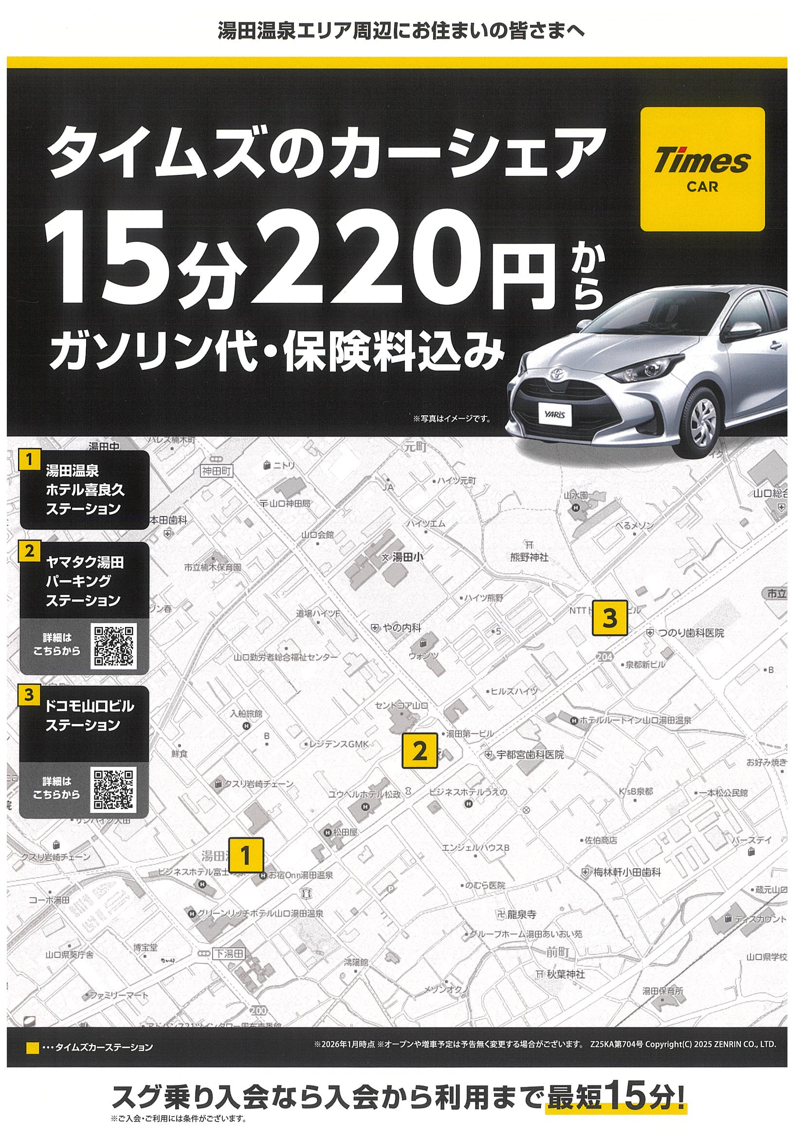 湯田エリアを拠点とした山口観光や、ビジネスの移動にぜひご活用ください。